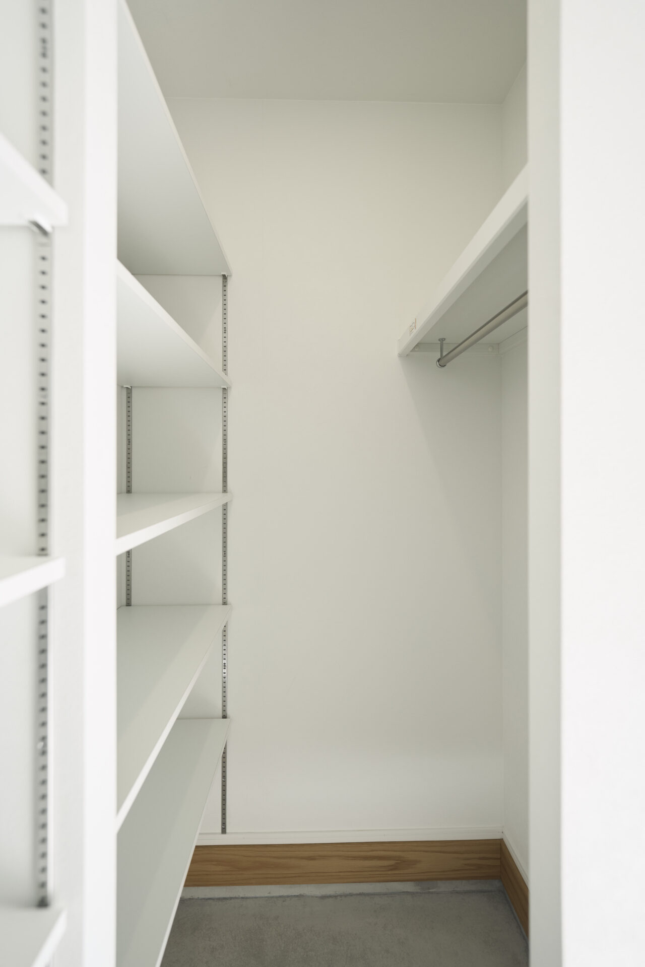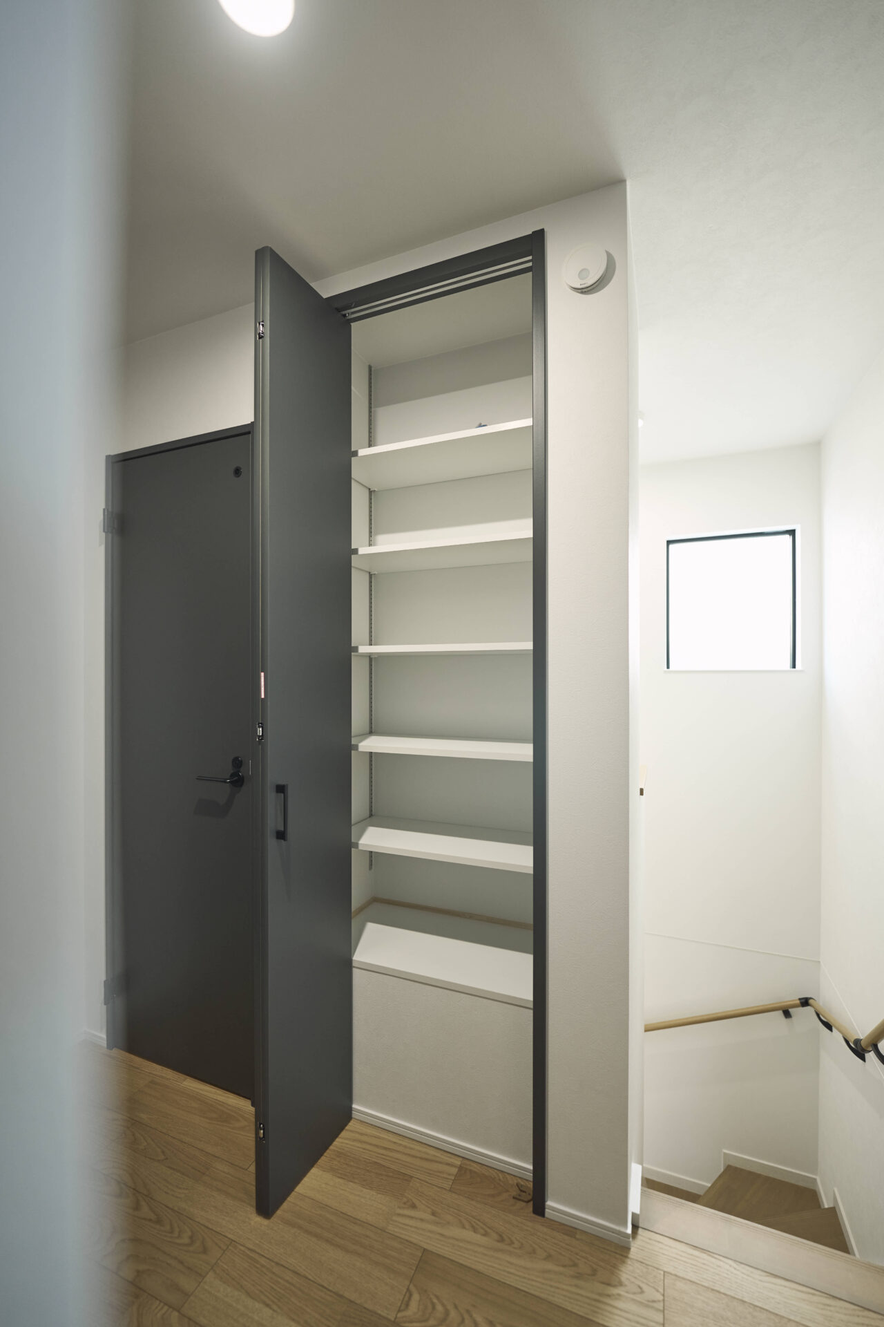 2階廊下|収納を完備。可動できる棚ですので、用途に合った高さに。