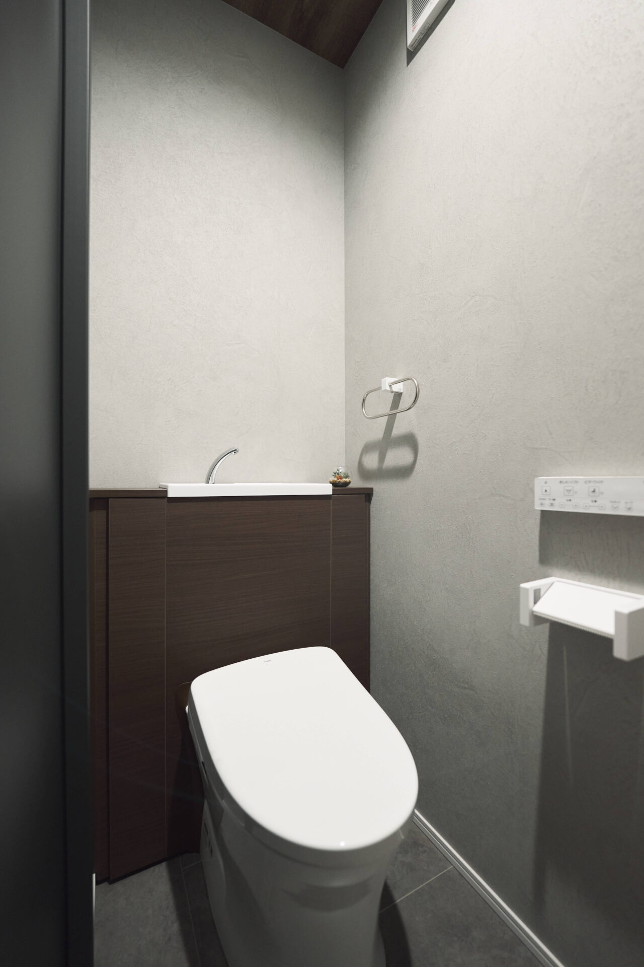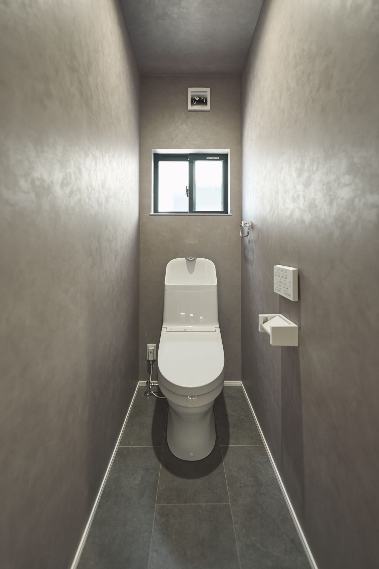 2階WC|床、壁共にシックな色合い。