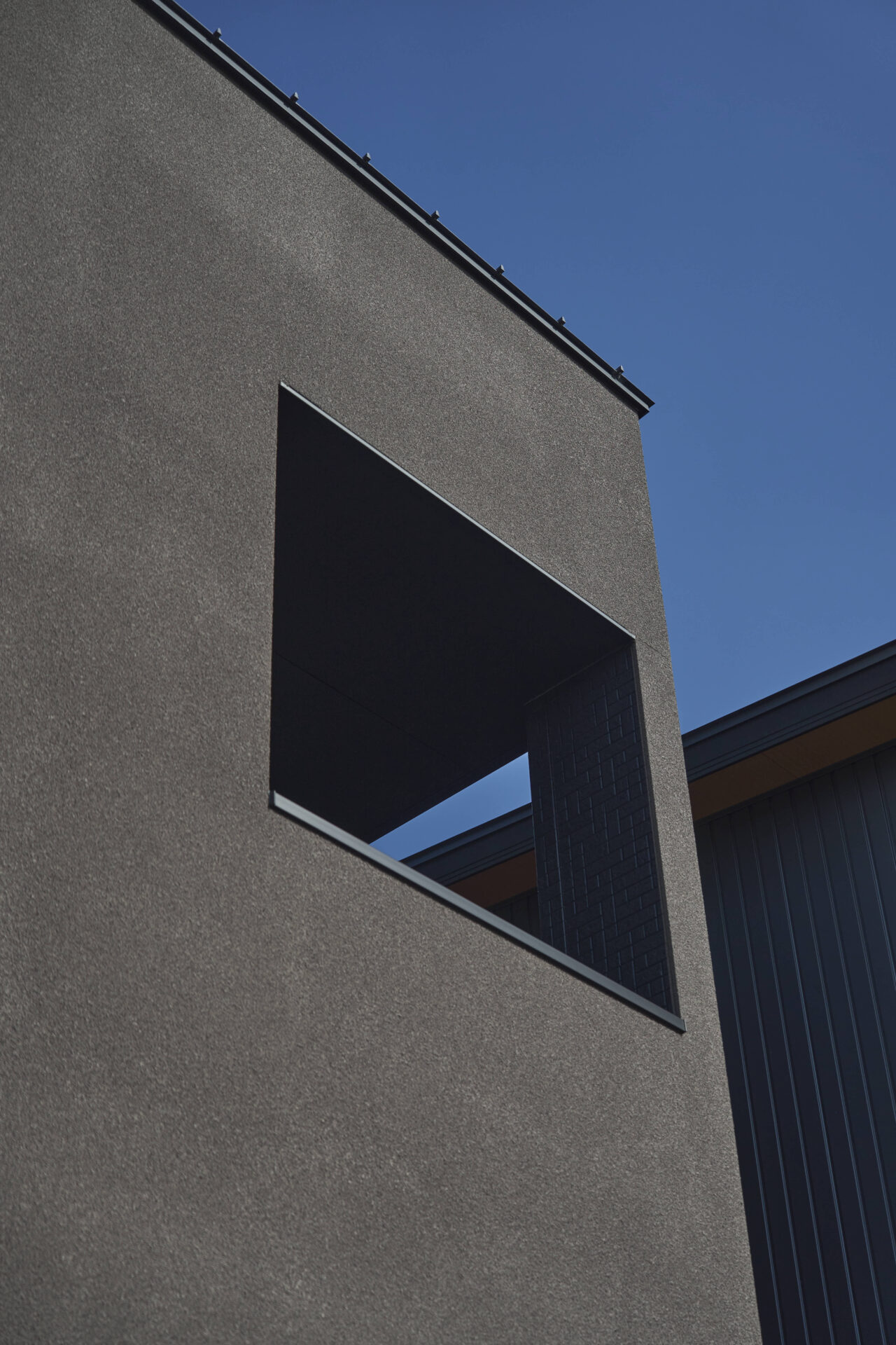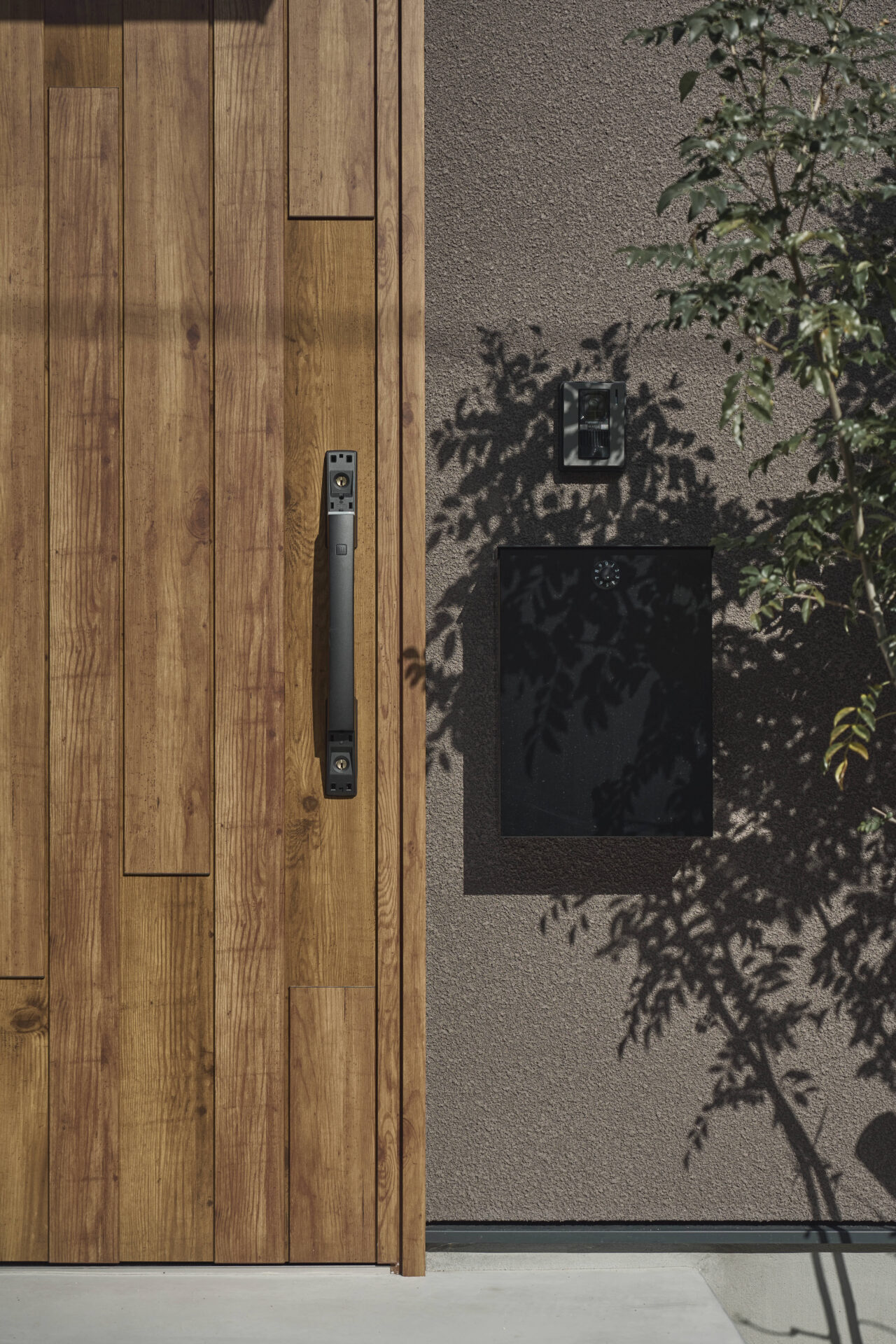外観|正面に塗り壁(ジョリパット)を採用する事で、 外壁の繋ぎ目が無くなり、一体感のあるデザイン。