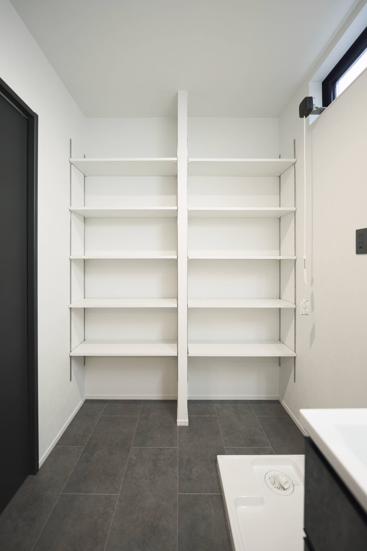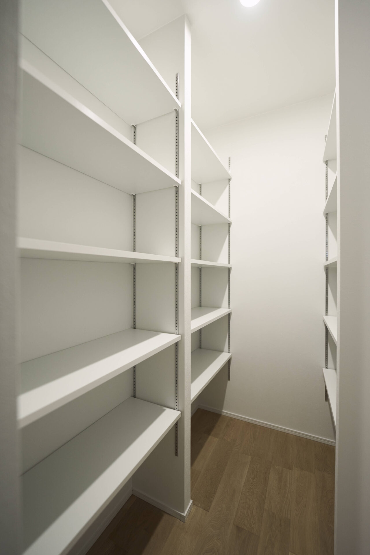 KP|可動棚付きのパントリーを設置。自由に調整でき、自分に合った収納が可能です。