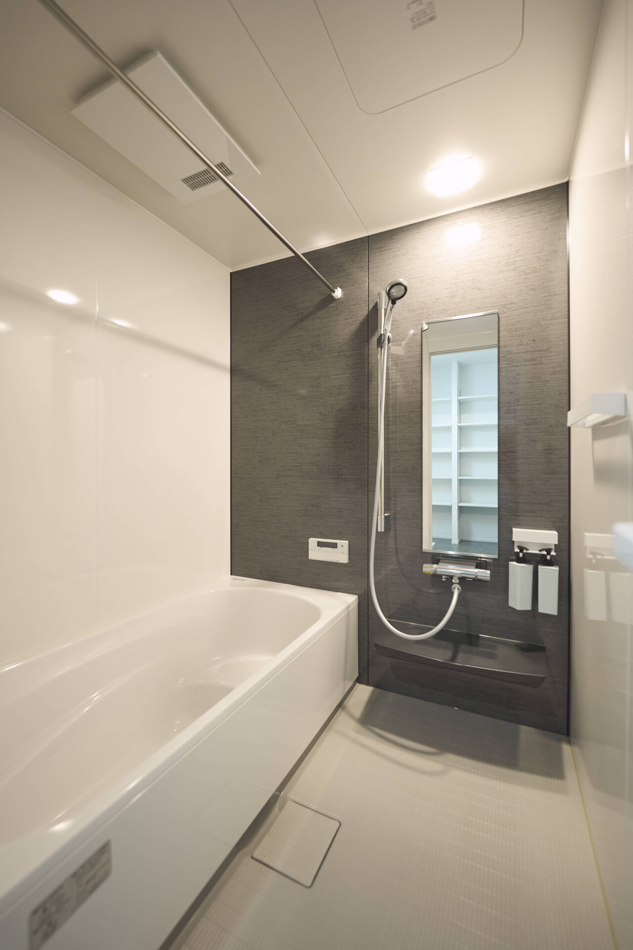 浴室|天井、壁、床、浴槽全てに保温材を施し、冬場でもしっかり温かさをキープ。壁はホーロー素材なので、汚れやカビが付きにくく、マグネットで活用。
