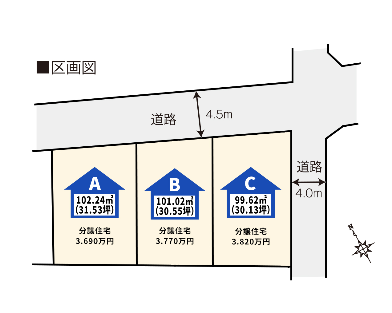 - 北道路 4.5m 東道路4m
